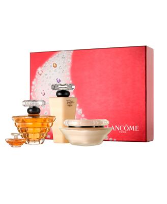 b) Lancôme Trésor Splendors Set: Set includes: Eau de Parfum Spray 3.4 Fl. oz, Perfumed Body Crème 5.3 oz, Foaming Bath Gel 3.4 Fl. oz. and Miniature Parfum .25 Fl. oz.(Original Value: $245 Now for:$92.00)