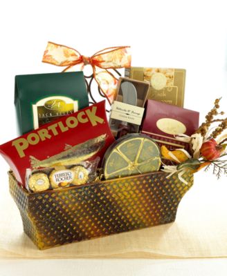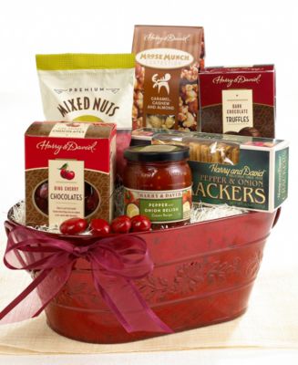 b) Harry & David Cheer Gift Basket: Great gourmet giving. Mile-wide smiles and an uncontrollable urge to dig-in are sure to be symptoms of receiving this basket brimming with Harry & David's best sweet and savories. Includes- Mixed nuts, Cherry chocolates, Dark chocolate truffles, Moose Munch confection, Pepper and onion relish, Pepper and onion crackers. (Original Price: $70.00 On Sale: 49.99)