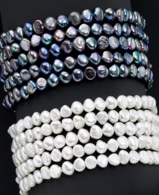 b) Cultured Freshwater Pearl Multistrand Bracelet Collection: Five strands of luminous cultured freshwater pearl make a bold, luxe statement. Set in sterling silver. Each sold separately. (Regular Price $60 On Sale: $29)