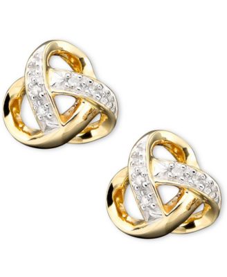 a) 14K Gold Diamond Accent Earrings: Diamond accents add glitzy sparkle to a traditional knot design. Set in 14k gold. (Regular Price $200 On Sale: $99)